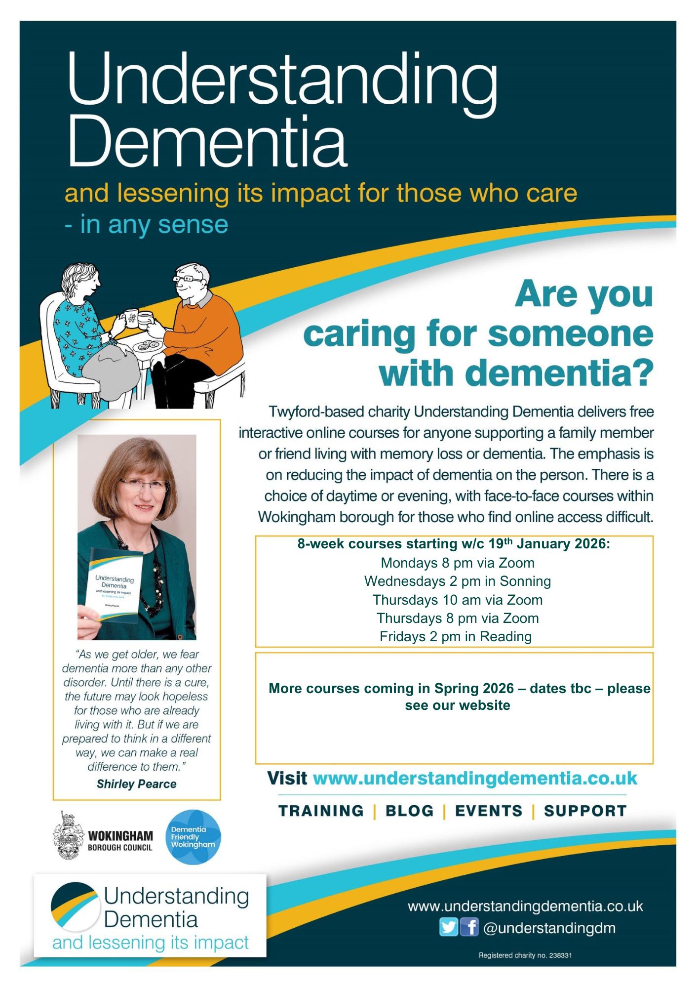 We hold 8 interactive sessions at weekly intervals for about 6 trainees at a time. Most of these are online via Zoom, but we also run a course within Wokingham Borough each term. We have now expanded our training into the Reading area.